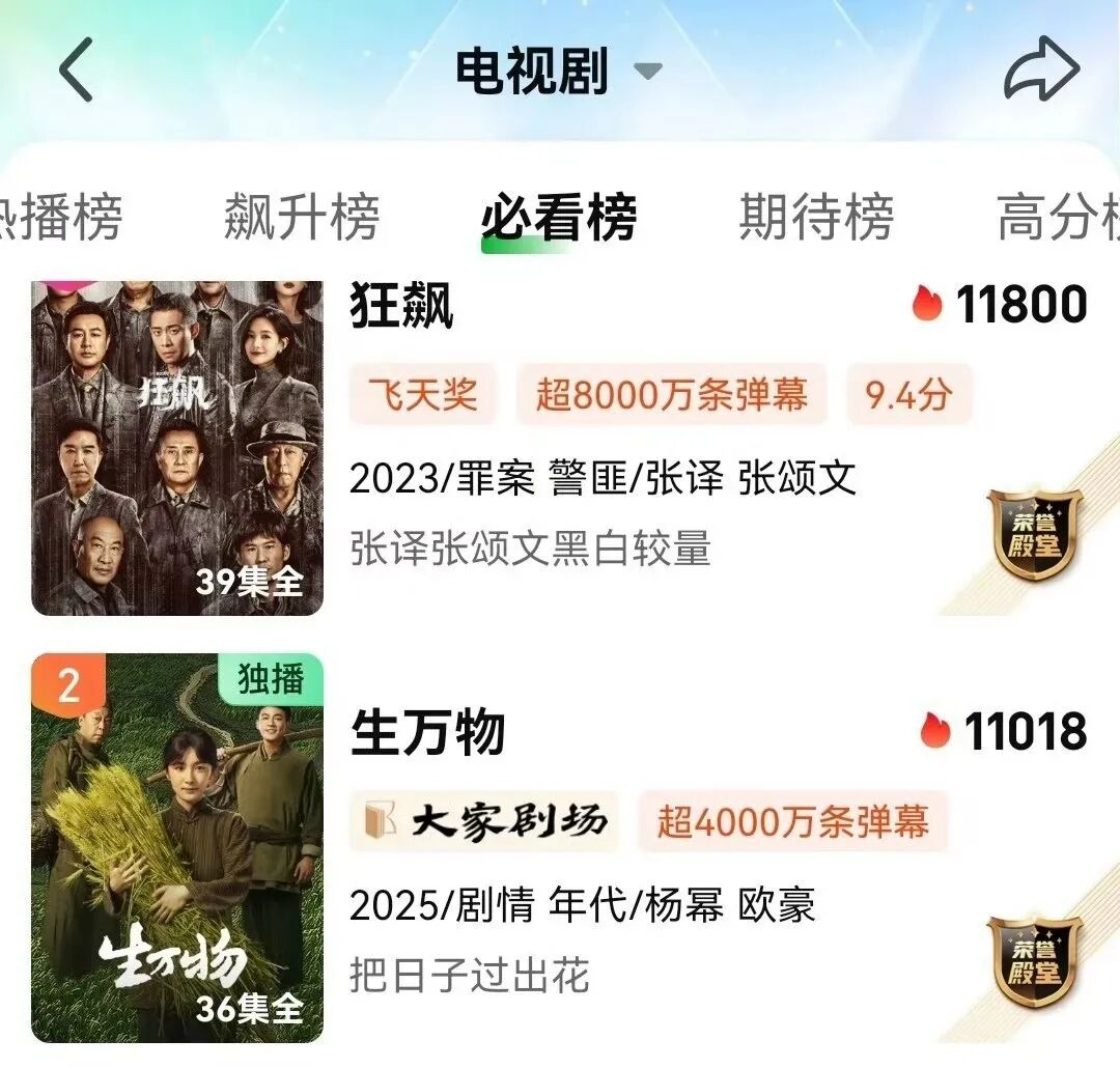在此之前,腾讯视频的“经典畅销榜”、爱奇艺站内必看榜已经成为反映内容长尾价值、持久影响力的重要指标。这些榜单不仅是成功的用户行为引导工具——平台通过榜单机制引导粉丝在非播期仍通过开通会员、季卡年卡并指定剧集计入拉新,持续为剧集导流,延长商业生命周期。更成为头部内容投资回报率的“试金石”,年度排名直接影响着平台的资源分配与题材创作方向。
