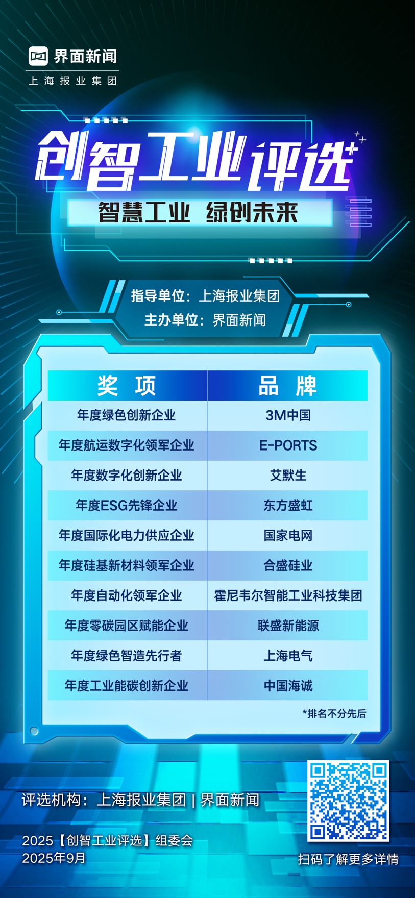 2025【创智工业】评选终榜名单(*排名不分先后):