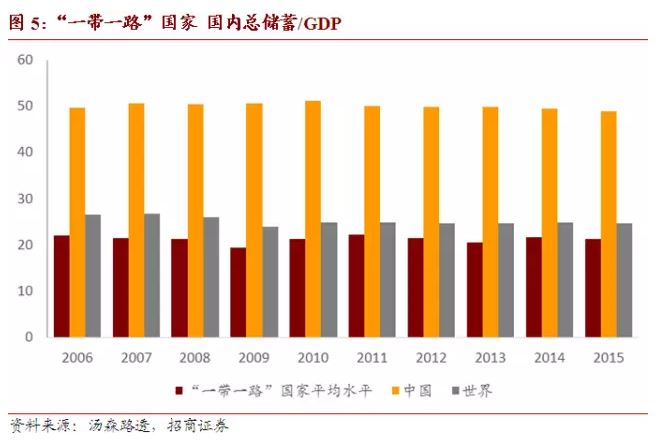 招商证券首席宏观分析师谢亚轩表示,中国和“一带一路”沿线新兴经济体相比,人口年龄适中,劳动力人口占比高,储蓄率高但同时杠杆率处于高位,需要去杠杆或稳杠杆;“一带一路”沿线新兴经济体人口结构“年轻”,储蓄率低,经济增速低,杠杆率也低,需要加杠杆。