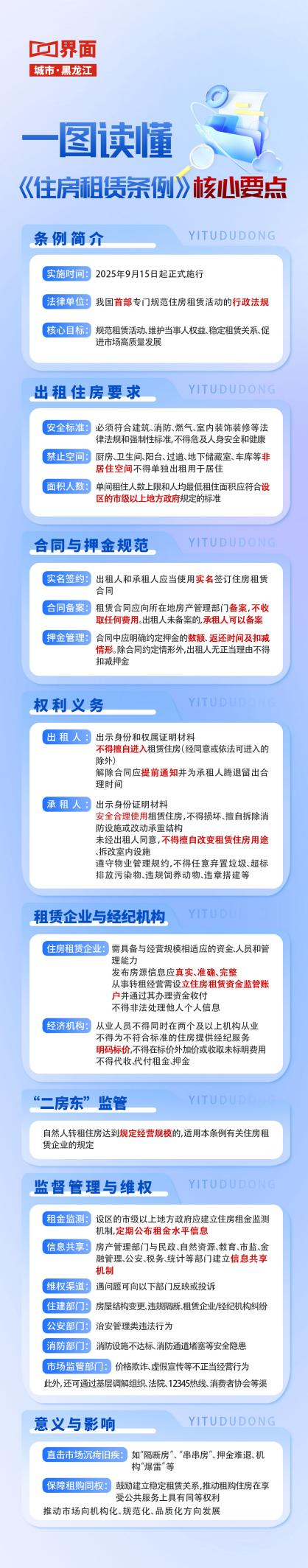 2025年9月15日,我国首部专门规范住房租赁活动的行政法规《住房租赁条例》(下文简称《条例》)正式施行。这部自起草阶段起就备受关注的法规,共7章50条。已在冰城住房租赁市场激起涟漪。