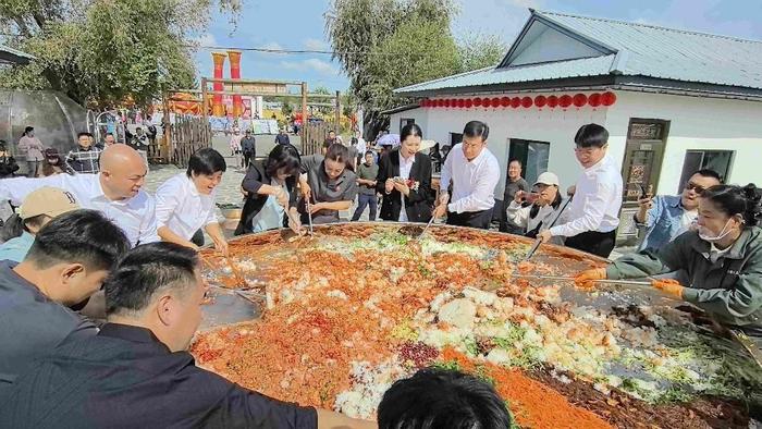 “近年来,我们深入实施乡村振兴战略,落实耕地保护和粮食安全责任制,农民收入和村集体经济收入实现增长,农村人居环境整治工作成效明显,农村改革和乡村振兴事业取得进步。这里得天独厚的气候条件和优越的地理区位,孕育了石板大米、兰岗西香瓜、江南寒地果等许多特色鲜明、品质出众的农产品,成为一张张闪亮的‘金色名片’。”宁安市委书记唐荣胜表示,上官地村丰收节作为宁安市连续八年举办的特色活动,既是一场农民朋友欢庆丰收、共享幸福的盛大集会,也是一次展现新时代“农”风采的生动实践,更是一次集大米主题推介和“看、品、玩、购”于一体的农业文化体验。