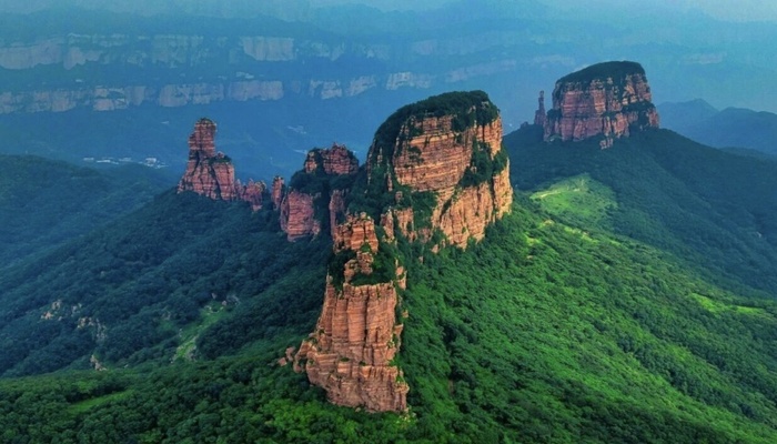 赞皇最具代表性的自然景观,当属嶂石岩地貌。嶂石岩自然景观主要为“丹崖、碧岭、奇峰、幽谷”,它与丹霞地貌、张家界地貌并称为中国三大砂岩地貌。嶂石岩景区内,三层叠起的赤壁丹崖绵延十里,犹如一幅巨型山水画卷,被誉为“百里赤壁,万丈红崚”。最高峰海拔1797.4米,森林覆盖率高达98%,是华北地区保护最好、品种最全的“天然植物园”。