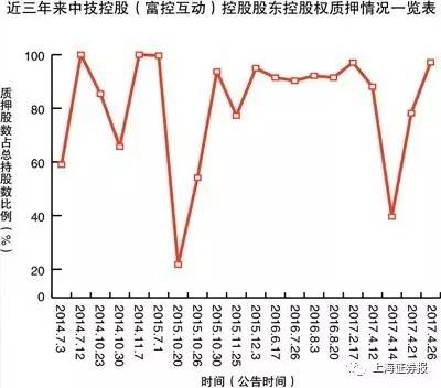 先看股权质押方面。在2013年底借壳ST澄海后,2014年7月3日,颜静刚便质押了1.05亿股中技控股股权,占总股本的18.24%;当月12日,颜静刚又质押7273.34万股中技控股,累计质押比例达到公司总股本的30.87%,至此,其所持股份全部质押。