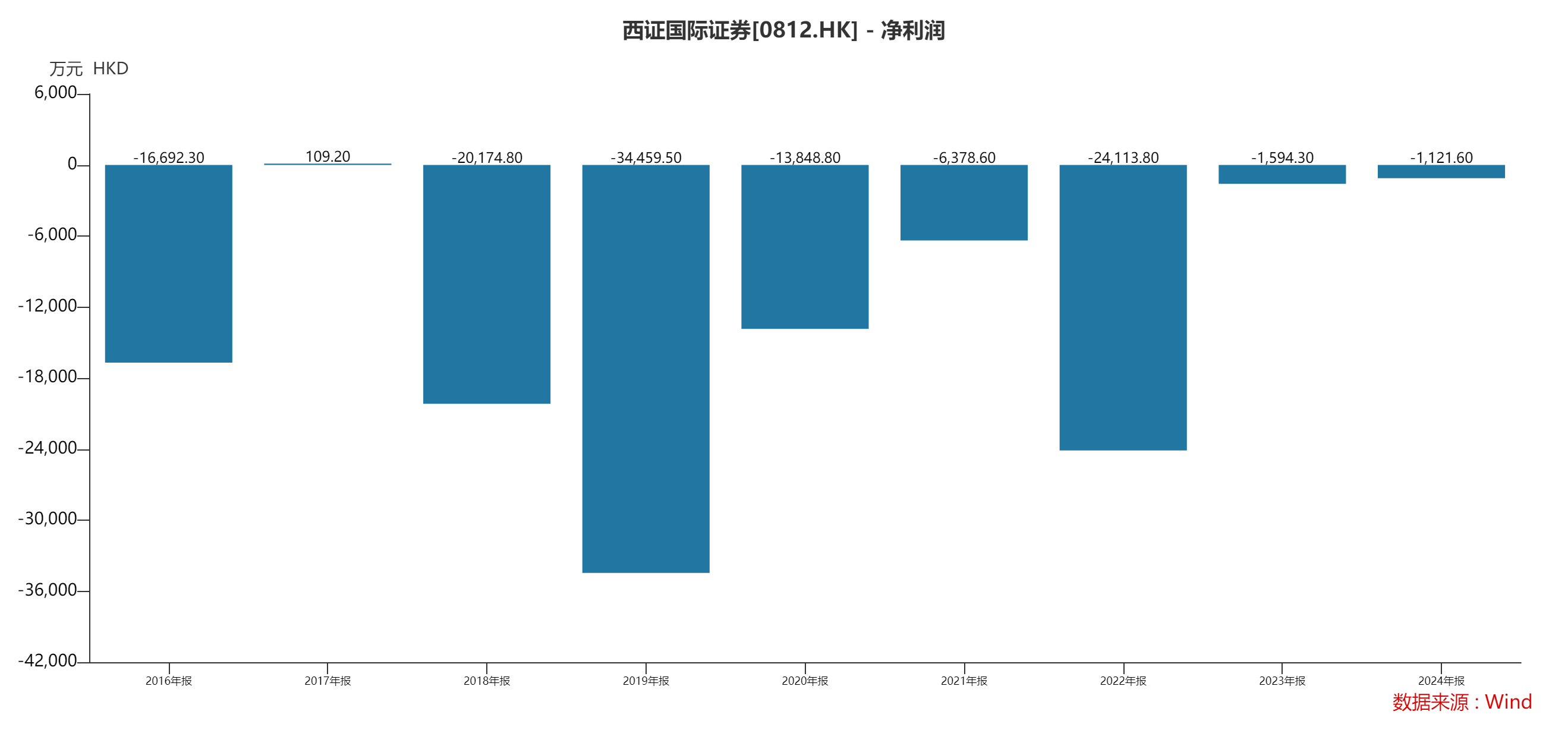 在被收入西南证券麾下的最初几年,西证国际证券的盈利情况就呈现波动。2016年至2024年,西证国际证券仅有2017年实现盈利,9年累亏超10亿港元。