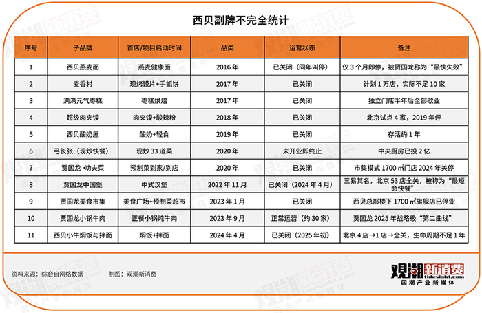 自2016年起,贾国龙基本每年都会推出一个子品牌,也不断推翻原有的副牌,快速转向新的副牌。战略定力不足导致副牌屡屡折戟,定位模糊、跟风式开店难逃被淘汰的命运。