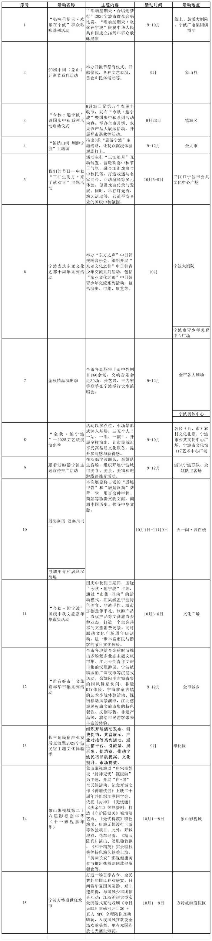 2025年“今秋·趣宁波”金秋文旅主要活动一览表