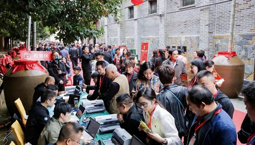 许多前来参与开酿节的游客,都是为一品头排美酒而来。认购区内人头攒动,无论是经历160天超长发酵的秋酿头排酒、在清末民初吴隆兴坊老酒库中经陶坛陈藏多年的封藏酒,还是需提前预约、凭券限购的“临水玉泉·精品蓝标”,皆供不应求。