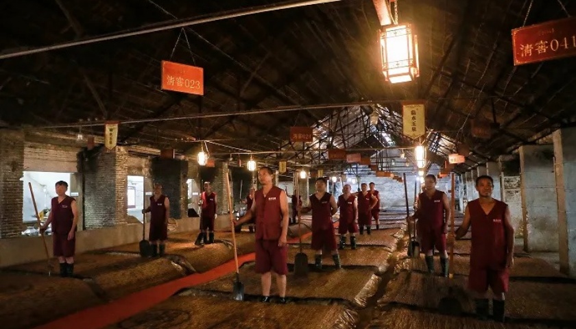 随着“吉时到,开酿!”的号令响起,临水秋酿正式开启,沉静了整个夏天的明清古窖池,在这一刻被重新唤醒。