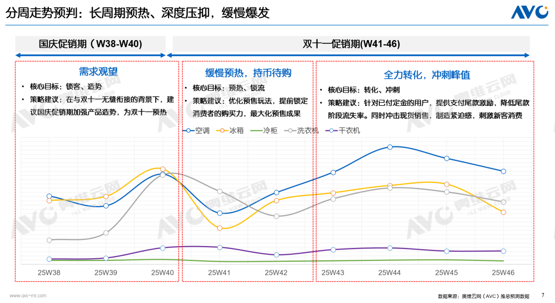 建议三:结合能效标准升级窗口,加快新品迭代:将能效标准升级视为机遇,通过快速推出符合新能效标准的产品,抢占市场先机,淘汰落后产能。尽管短期市场面临压力,但政策红利与转型机遇并存,行业若能精准落地上述策略,有望在周期调整中夯实发展根基,为后续复苏积蓄动能。奥维云网原创文章,未经授权,禁止任何机构或个人抓取本文内容,用于训练AI大模型等用途。