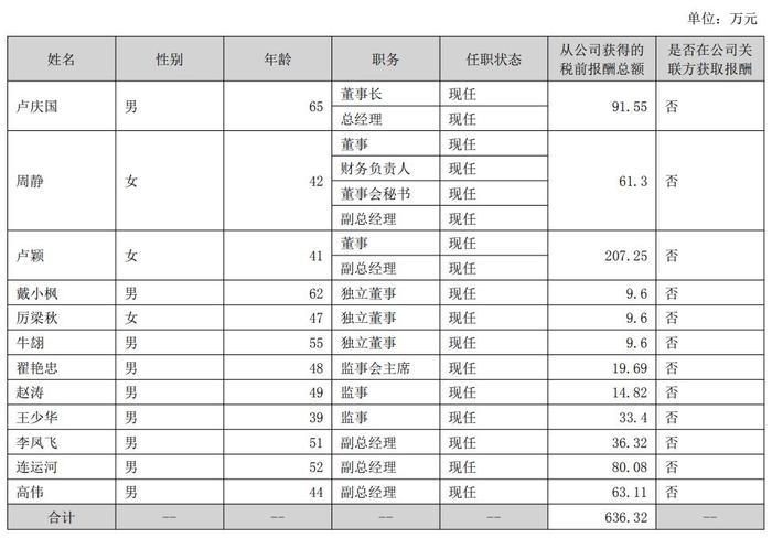 同时,公司董事会聘任卢颖女士为公司新一任总经理,其领取的薪酬为本人担任公司总经理职务对应的薪酬,薪酬基数由基本薪酬基数38.8万元及绩效考核薪酬基数170万元构成,不在公司领取董事职务薪酬(或津贴)。