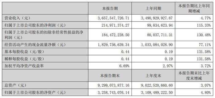财务方面,2025年上半年,晨光生物实现营业收入36.58亿元,同比增长4.77%;归属于上市公司股东的净利润2.15亿元,同比增长115.33%。