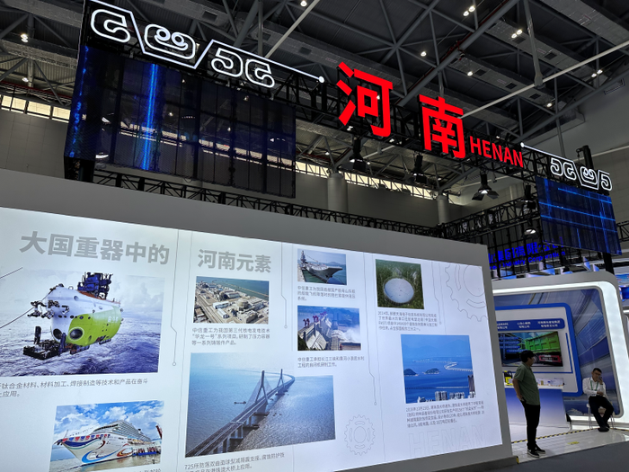 主宾省展馆工作人员向界面新闻介绍,本次参展河南企业中,营收超百亿的有16家,其中包括平煤神马、超聚变、郑煤机、宇通集团、许继电气、平高电气等,还有牧原集团、中航光电、豫光金铅、瑞贝卡等各自领域的龙头企业。
