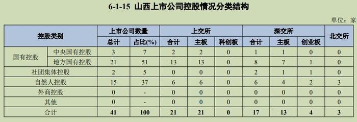 按山西上市公司控股情况来看,国有控股总计有24家,非国有控股共17家。