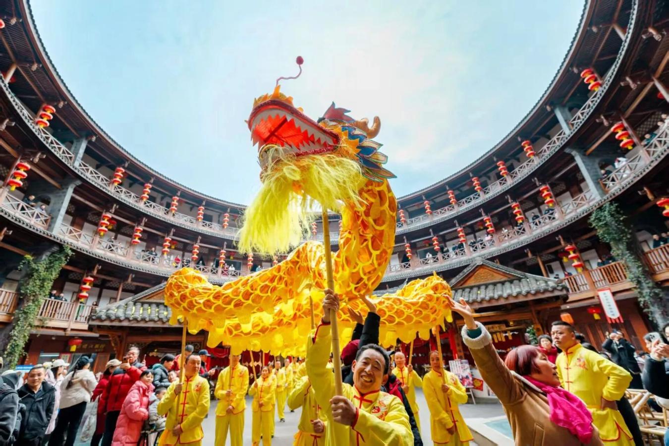75米金龙巡游古镇(10月1日、3日、5日、7日),省级非遗客家龙舞穿街庆双节(10月2日、4日、6日、8日),还有绚烂铁花在鸳鸯湖旁绽放(10月6日晚)。