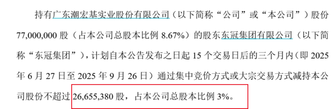 当天晚上,公司股东就抛出了减持计划。具体而言,因自身资金需求安排,东冠集团有限公司(以下简称:东冠集团)计划在三个月内(即2025年6月27日至9月26日)减持不超过2665.54万股公司股票,占总股本的3%。