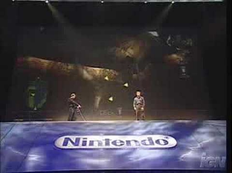 2003年的任天堂E3发布会,堪称历史上最无聊的任天堂发布会。但是一年后,任天堂带来了E3展历史上最激动人心的时刻。当岩田聪公布完关于NDS的种种消息之后,“大猩猩”雷吉宣告发布会即将结束,但在此之前他想给在座的各位放一段游戏视频。此时有不少人起身准备离开,今天他们已经非常满足,不敢奢求更多。视频的前段完全看不出是什么游戏,离席的人越来越多。突然画面中出现了一个熟悉的身影,人群中开始有人尖叫——他们看到了骑着艾波娜的林克,哦天哪,这是新的《塞尔达传说》,一个写实版的成年林克!当视频播放完,整个会场爆炸了。此时整场发布会都未出现的宫本茂,带着大师剑与海拉尔盾突然从屏幕后现身,观众全都起身鼓掌、跺脚、骂脏话。这就是《黄昏公主》第一次与这个世界问候的方式,比游戏本身更加震撼。