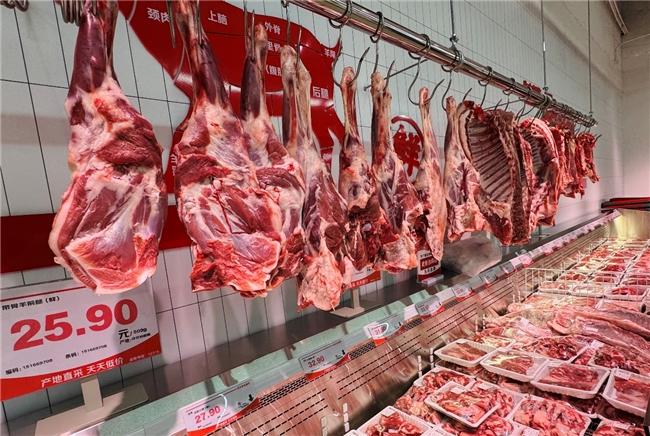 从应季鲜果、新鲜肉禽到鲜活海产,门店各区域均人头攒动。水果区内,酸甜清爽的红心西柚、晶莹剔透的阳光葡萄吸引众多顾客驻足选购。肉食区中,整只带骨羊前腿、整扇猪前排等肉品,均清晰标注产地与日期,尽管频频补货,仍迅速售罄。海鲜区同样人气不减,鲜活弹跳的海白虾、应季肥美的梭子蟹、纹理分明的厚切冰鲜三文鱼,竞相引发选购长队。