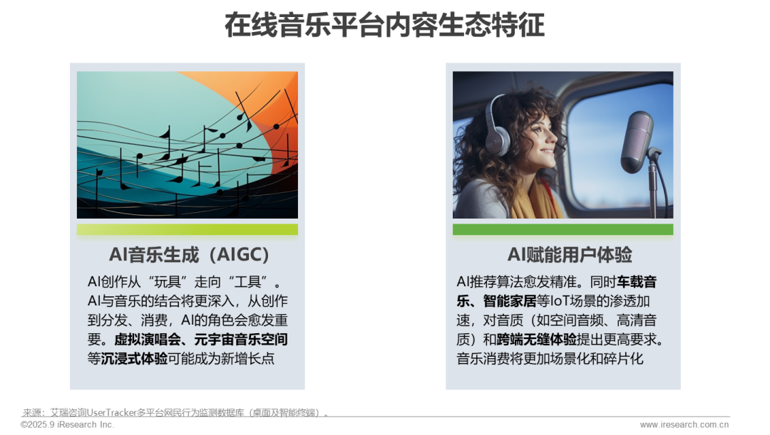 2025年上半年,AI技术的广泛应用正从创作、分发到体验各个环节重塑在线音乐领域。未来,生态竞争、体验创新和技术驱动将成为竞争关键词
