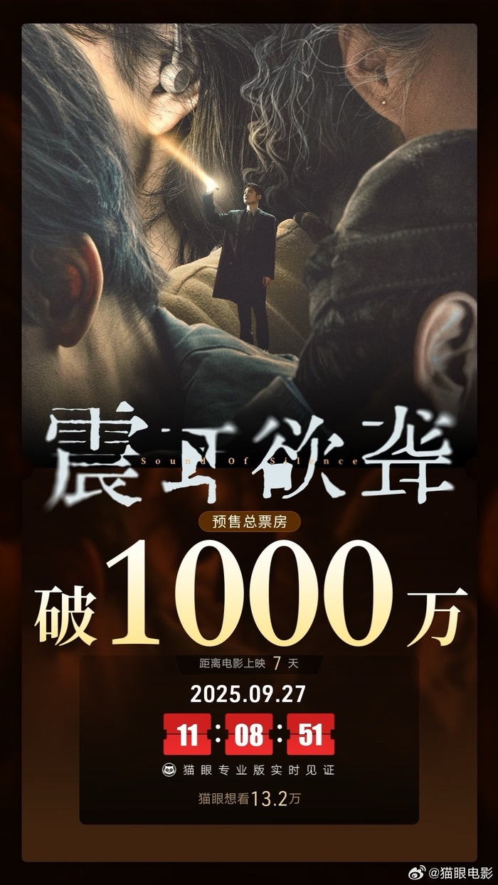 据猫眼专业版数据,电影《震耳欲聋》映前7天,点映及预售总票房破1000万。