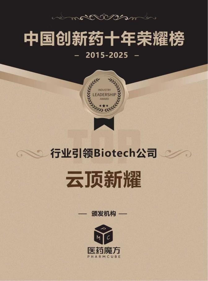 9月24日,“2025中国医药决策者峰会暨中国创新药十年成就巡礼”活动在北京隆重举行,港股创新药企云顶新耀(1952.HK)凭借其在创新药研发、全球化战略布局以及商业化转化方面的综合实力,荣登“中国创新药十年荣耀榜——行业引领Biotech公司”榜单。