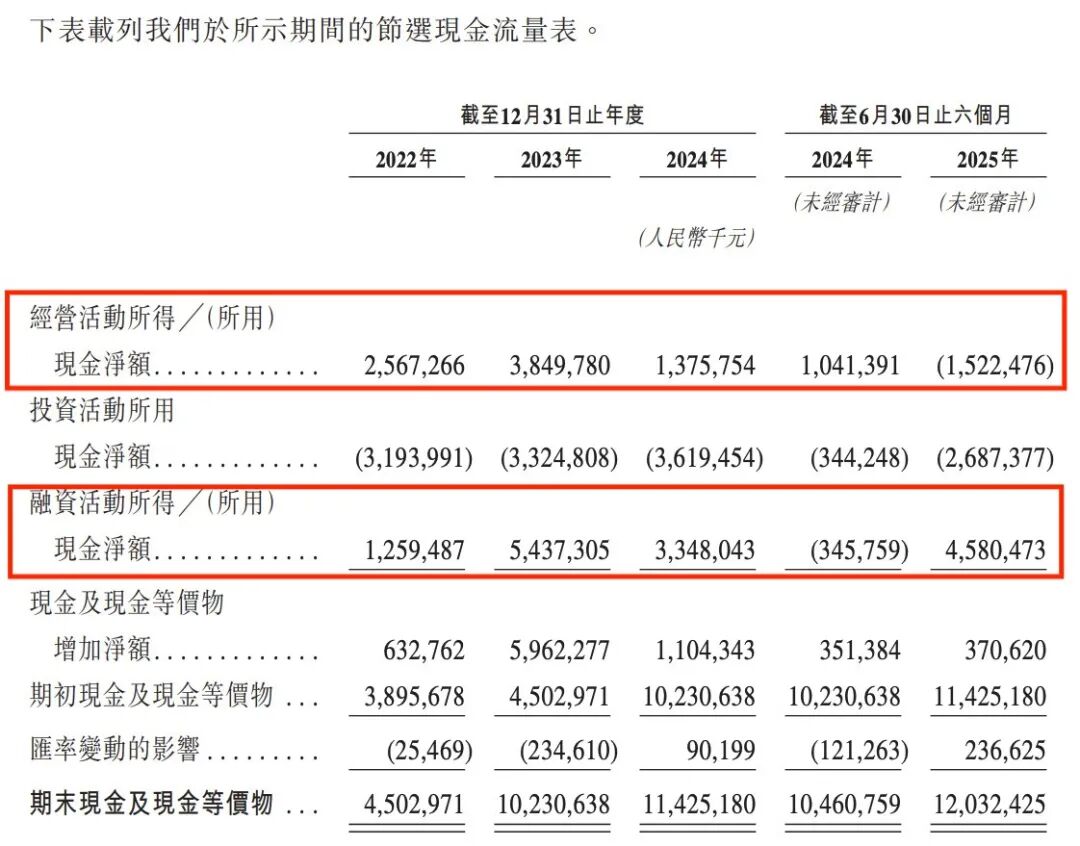 华勤技术赴港上市的招股书披露,公司在2022年、2023年、2024年以及2025年上半年(以下简称“报告期内”),经营活动所得现金净额分别约为25.67亿元、38.5亿元、13.76亿元及-15.22亿元。