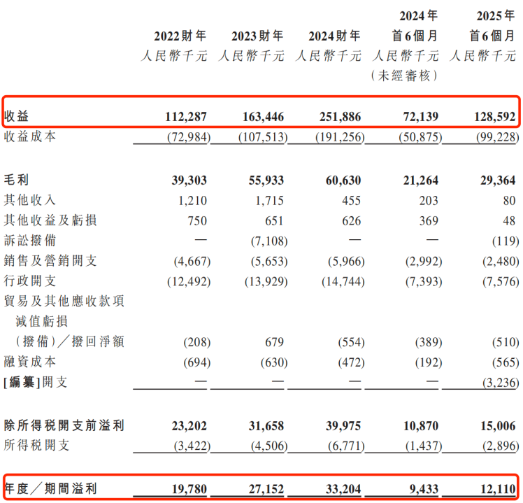 2022年至2025年前6个月(以下简称“报告期”),圣火科技的收入分别为1.12亿元、1.63亿元、2.52亿元和1.29亿元;利润分别为1978万元、2715.2万元、3320.4万元和1211万元。