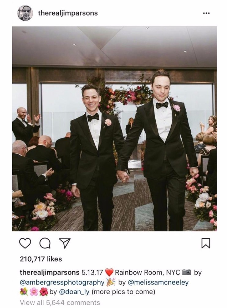 美剧演员收入多年冠军的“谢耳朵”Jim Parsons上周结婚了!对象是他交往了14年的男友。甜不甜。