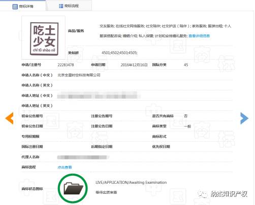 好了,说完这位吃土的崔女士后,我们在来说说“吃土”这个词,据小纳查询发现,目前已有两家公司提出了注册“吃土”商标的申请,但都还没注册成功。现在这两家公司注册的“吃土”商标,一个处于等待实质审查状态,一个在初审公告状态。