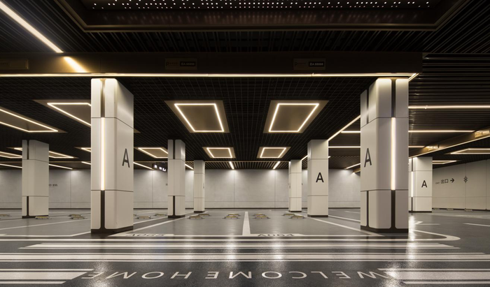 这份惊艳还延伸到地下停车场。金川翠屿颠覆传统地库仅重点装修入口的做法,投入巨资打造整盘全域五星级光厅。