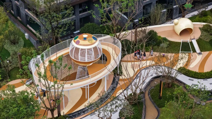 儿童区周边特意种植了迷迭香,则利用其天然驱蚊特性,让孩子尽情玩耍。