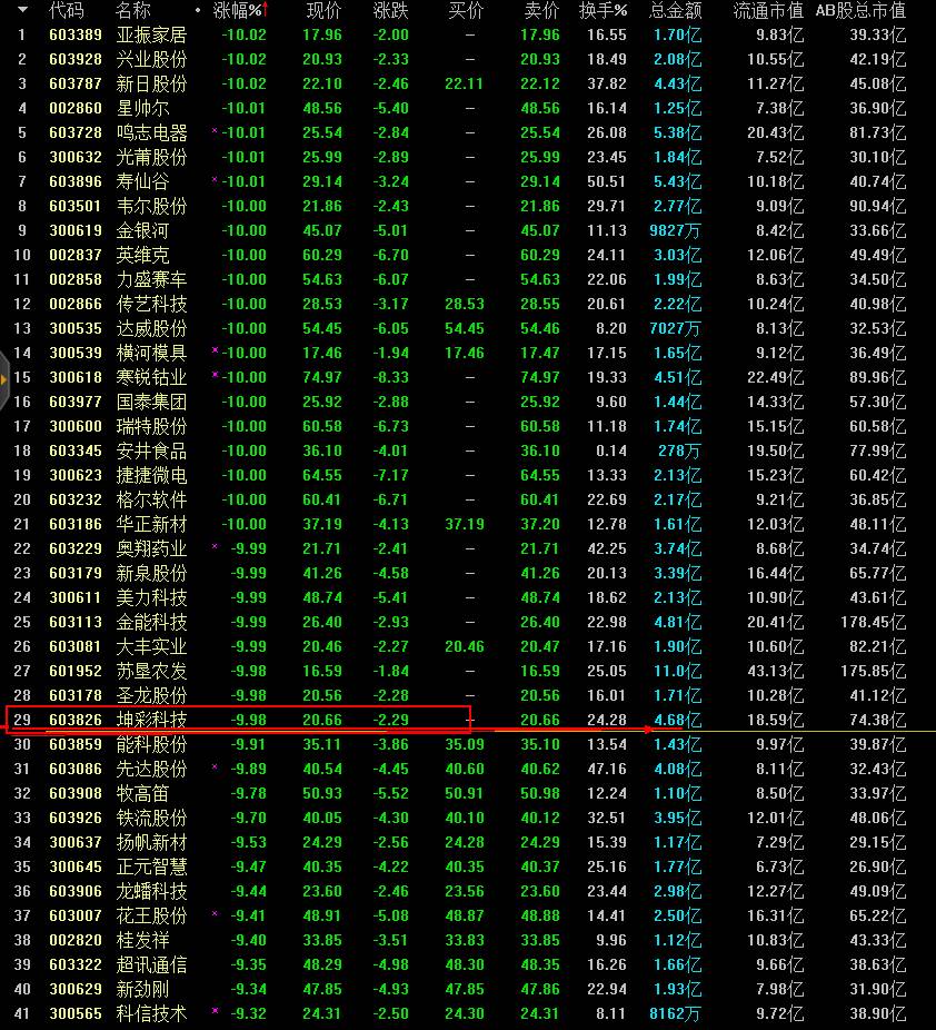 而在具体个股跌幅方面,在两市42只跌停股中,次新股就占到了29只之多,占比高达69%。