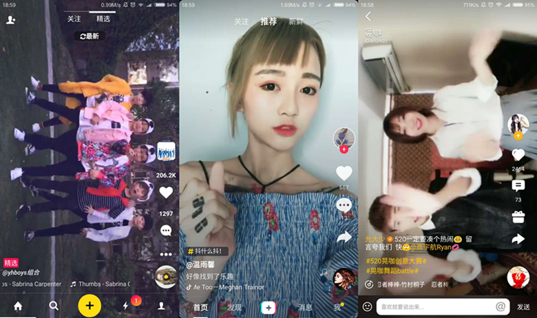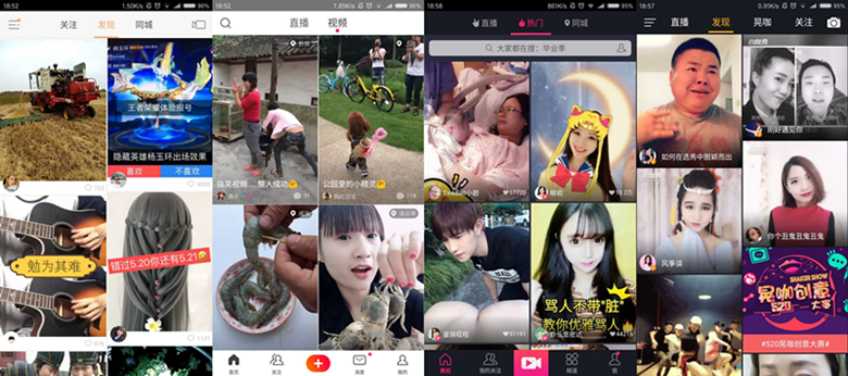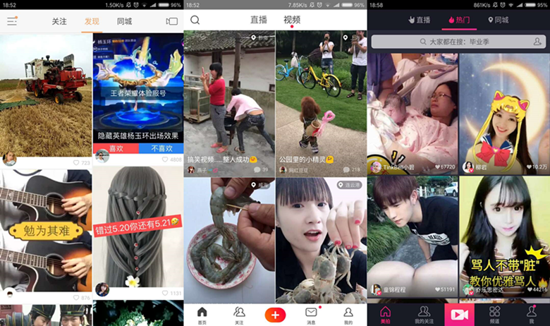 嗯,上边三个分别是快手、火山、美拍。我不说,你们自己区分吧。