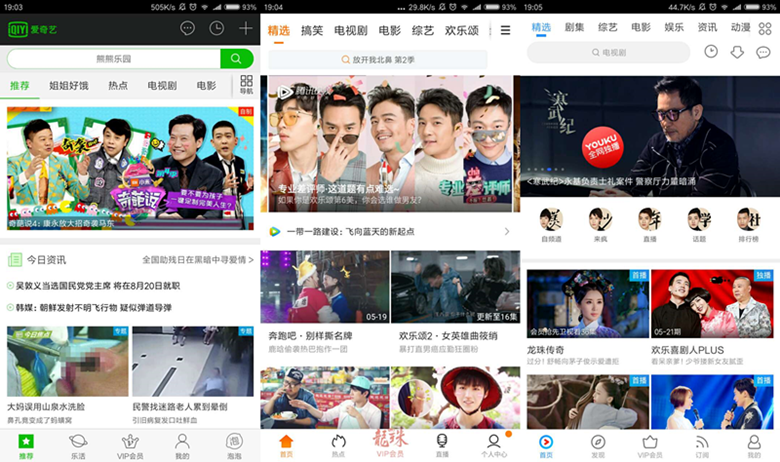 终于来到了大家可能是最熟悉的视频平台这个类目。这个类目互相撕打其实已经是第三季了。第一季是在若干年前,PPTV、PPS、youku的流媒体播放器对网页播放时代,然后是youku、土豆的PGC对UGC时代,再然后进入移动互联网爱奇艺、合一、腾讯的三国混战(BAT的儿子的决斗)。