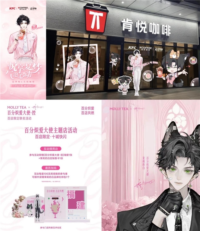 他曾与肯悦咖啡、茉莉奶白合作推出限定主题店与联名饮品,借助个性化虚拟形象与沉浸式AR打卡互动,吸引大量年轻消费者线下参与