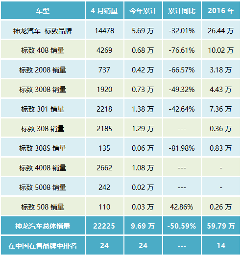 更让人沮丧的数字是同比增幅,今年前4个月,拥有三款SUV车型的东风标致完全没有跟上市场的节奏——销量同比下跌32%,其中标致2008和3008两款SUV的销量跌幅竟然高达66.57%和49.32%。当然,缺乏SUV车型的雪铁龙品牌就更为悲观了。