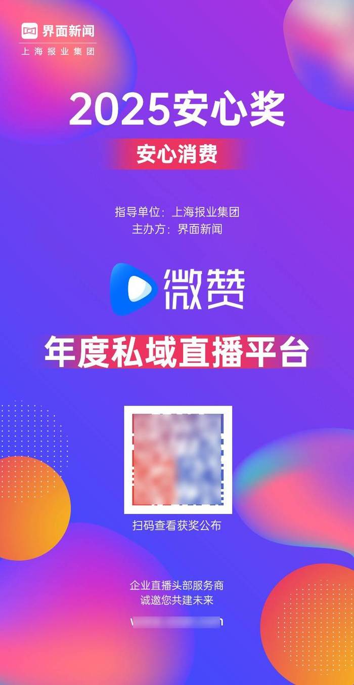 9月24日,由上海报业集团丨界面新闻主办的2025【新消费盛典】正式揭晓年度【2025安心奖】获奖名单。微赞凭借在私域直播领域的出色表现与专业服务,脱颖而出获评“年度私域直播平台”。