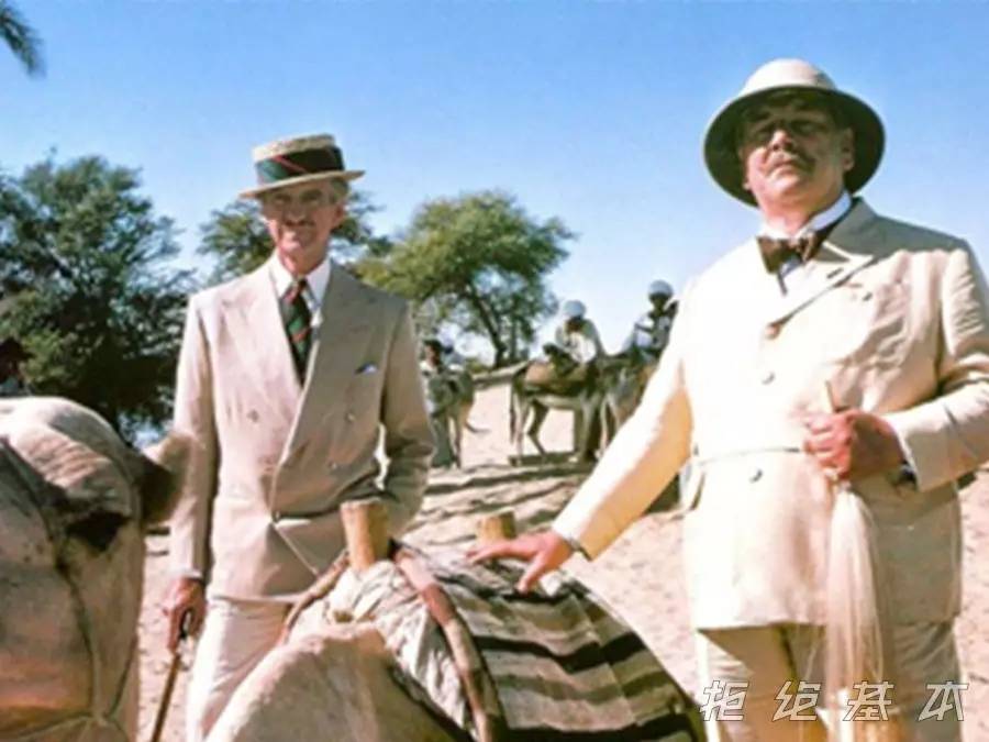 三件套西装、皮鞋、手杖,再加上一顶木髓盔成了绅士探险家的标配。你看「 尼罗河上的惨案 」里的大侦探波洛 ▼
