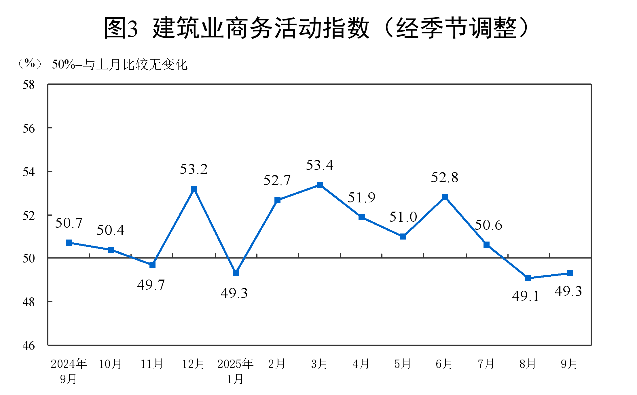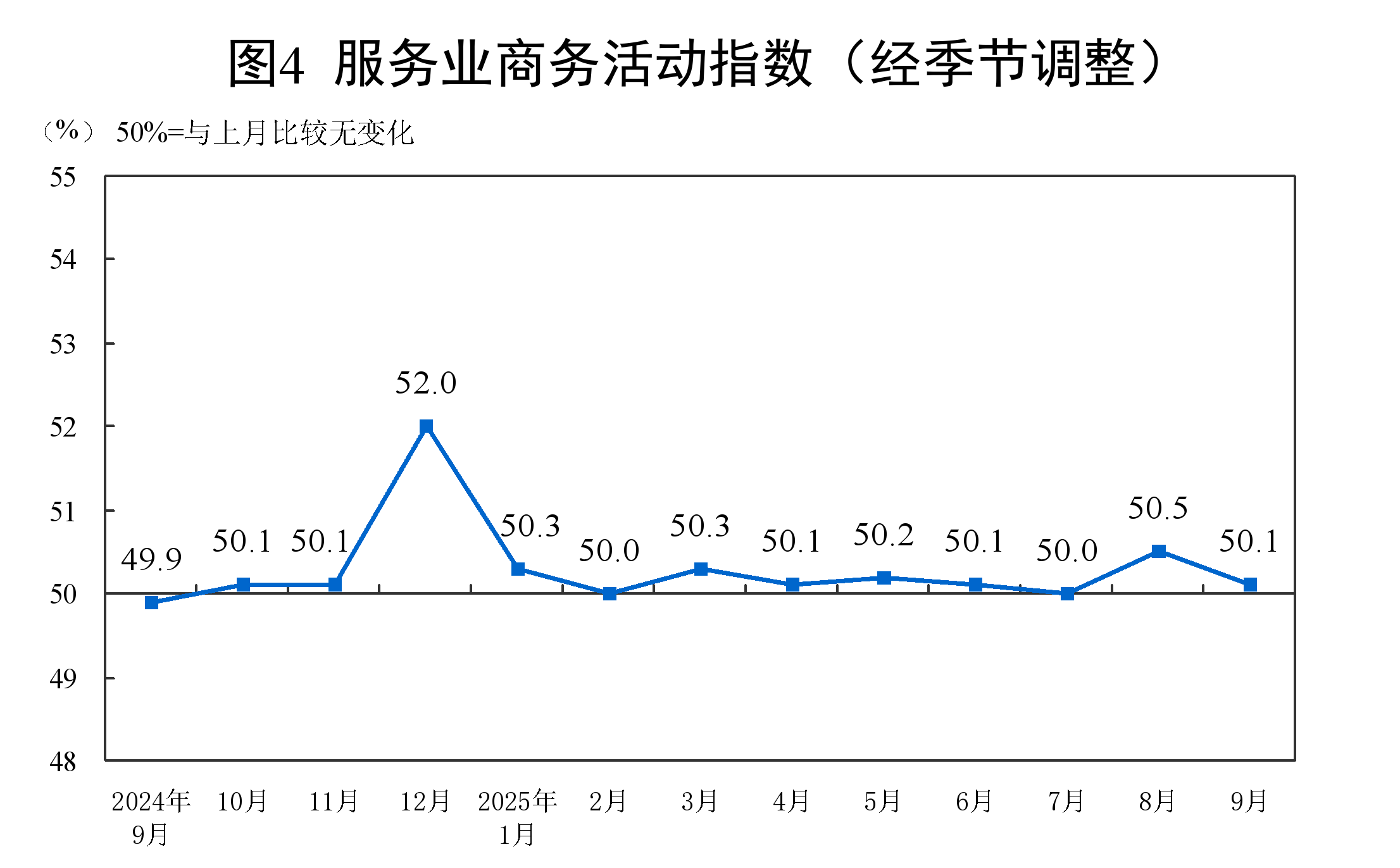 国家统计局9月30日消息,9月份,非制造业商务活动指数为50.0%,比上月下降0.3个百分点,位于临界点,非制造业业务总量总体稳定。