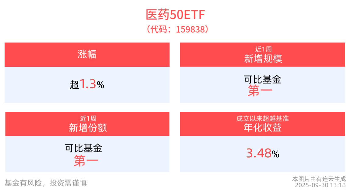 医药50ETF(159838):跟踪中证医药50指数,一键覆盖A股医药生物核心50强,兼顾创新药、医疗服务与器械全产业链。