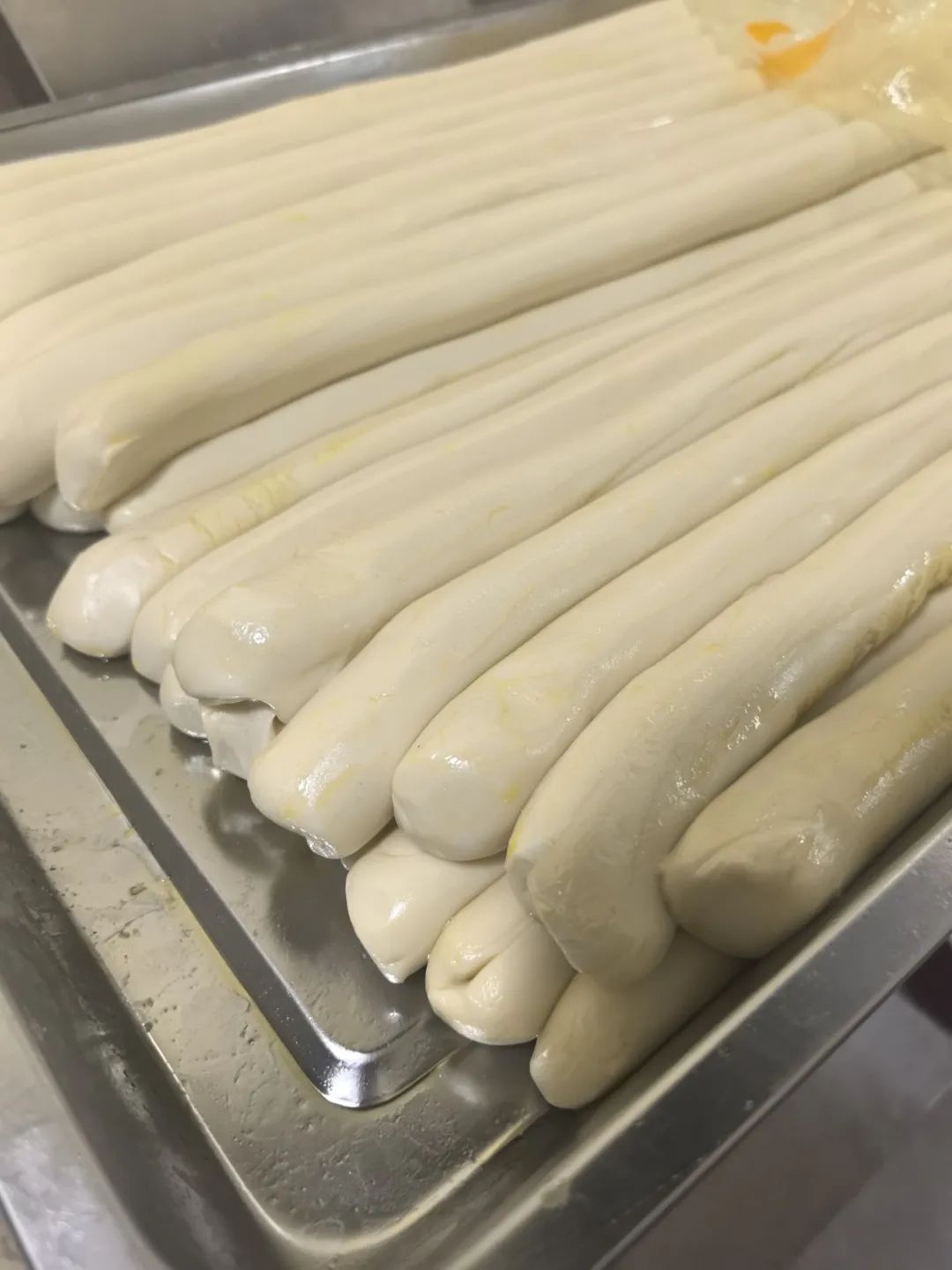 面团揉捻成长条状后,分成均匀等大的剂子,将剂子搓滚成胚条子,在胚条子上均匀涂抹上清油,用清洁面巾将所有胚条子覆盖,民间称这一步为“醒面”。