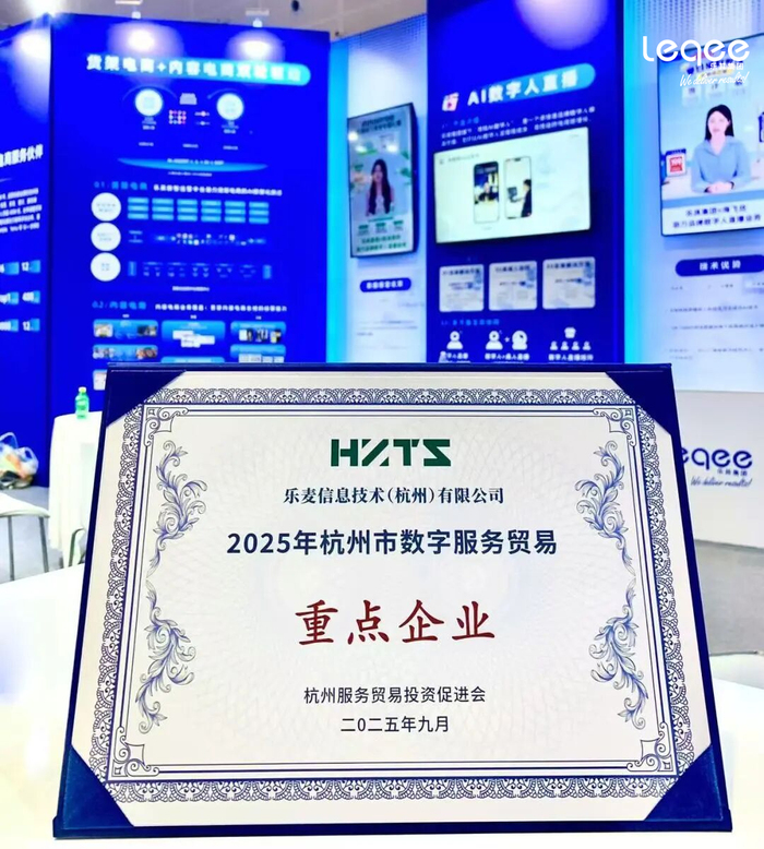 在数贸会“数字服务贸易创新产业对接会”上,乐其集团凭借在数字技术研发、全链路服务及全球化布局中的卓越表现,荣获由杭州服务贸易投资促进会颁发的“2025年数字服务贸易重点企业”奖项。这一荣誉不仅是对乐其过去一年在跨境电商、直播电商、智能供应链等领域创新实践的肯定,更彰显了其在推动产业数字化、智能化转型中的核心地位。乐其集团相关负责人表示将持续以技术为引擎,以服务为纽带,助力更多中国企业走向世界舞台。