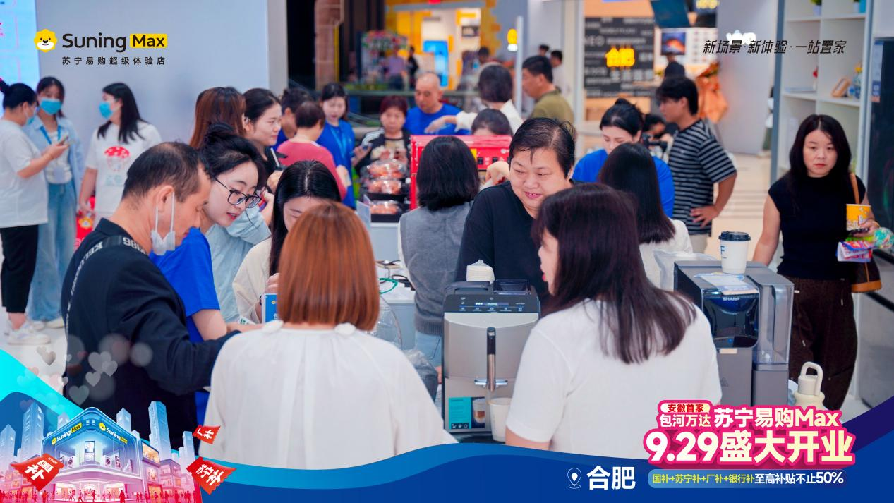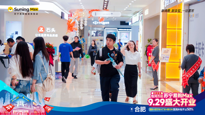 据悉,本次包河万达苏宁易购Max店开业正值国庆中秋大促,苏宁易购携手百大头部品牌,针对消费者细分需求,引入海信、格力、三星、东芝、小天鹅等高规格专区,同时引入卡萨帝、COLMO等80多个高端品牌首发旗舰店入驻,集中展示最新技术成果,着力为消费者提供新品首发体验和潮流家电的尝鲜服务。9月29日开业期间,消费者到店可率先体验如安徽首家小米人车家全生态体验店、vivo蔡司镜头影像馆等首店,更能体验163英寸AI超级电视、四桶洗烘护热泵洗衣机、iphone17等科技潮玩新品。针对大屏电视、洗碗机、新风空调等安装门槛较高的产品,提供“十免空调安装”“洗碗机免费厨改”“百吋大屏电视免费上墙”等多重专属权益。通过产品、价格、服务、体验的多重升级,为用户打造新智家电首选换新渠道,通过“电竞赛事、鲸喜夜市、美食派对、品鉴会”等多样化形式,让消费者直观感受科技潮电带来的生活新体验。通过品牌联合升级补贴,推动融合新功能、新体验的趋势家电以亲民价格走进千家万户。