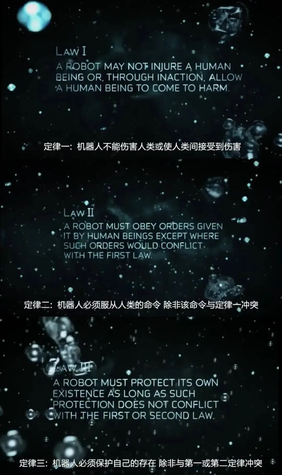 Alex强调,阅读科幻小说是他毕生的热爱,也是其电影创作最重要的灵感源泉。作为人机对抗题材的标杆之作,《我,机器人》就改编自美国科幻小说鼻祖阿西莫夫的经典作品。阿西莫夫提出的「机器人学三定律」,至今仍是人工智能题材叙事的重要框架。