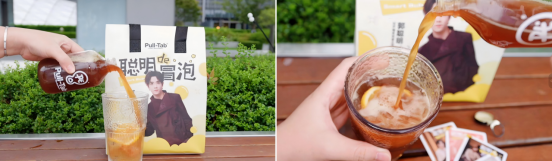 在出品形式上,结合了拉环标志性的“拉环瓶”与可复用的玻璃杯,消费者饮用时,可亲自感受将气泡水倒入满冰玻璃杯中的畅快体验,既环保又提升了消费仪式感;在风味上,柠檬的清新、气泡水的刺激与咖啡因的提神功效形成完美组合,不仅满足了年轻消费者对清爽提神饮品的需求,还巧妙呼应代言人郭聪明的“聪明的冒泡”谐音梗,成为粉丝追捧的焦点。