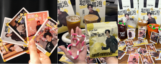 此外,拉环咖啡也为粉丝们准备了随套餐赠送的联名周边,不仅有郭聪明的拍立得小卡,还有风靡全网的“扭扭乐”盲袋,引发粉丝们打卡欲望的同时,也满足了当代年轻人对解压玩具的热忱心理。