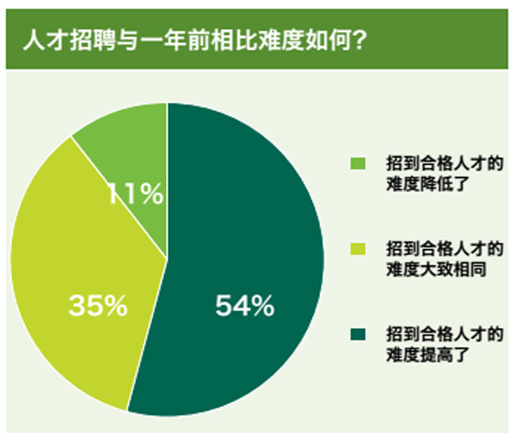 随着新岗位、新技能和新能力的需求不断涌现,招到理想应聘者也越来越难了。而大中华区对人才争夺的忧虑位居全球第一,这里的招聘者认为人才争夺(40%)以及招聘质量(22%)是他们面临的两项最大挑战。