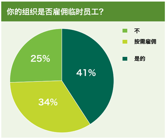 许多企业也明白这一点,数据显示,有75%的受访者表示,他们会定期或在需要时招募临时员工。