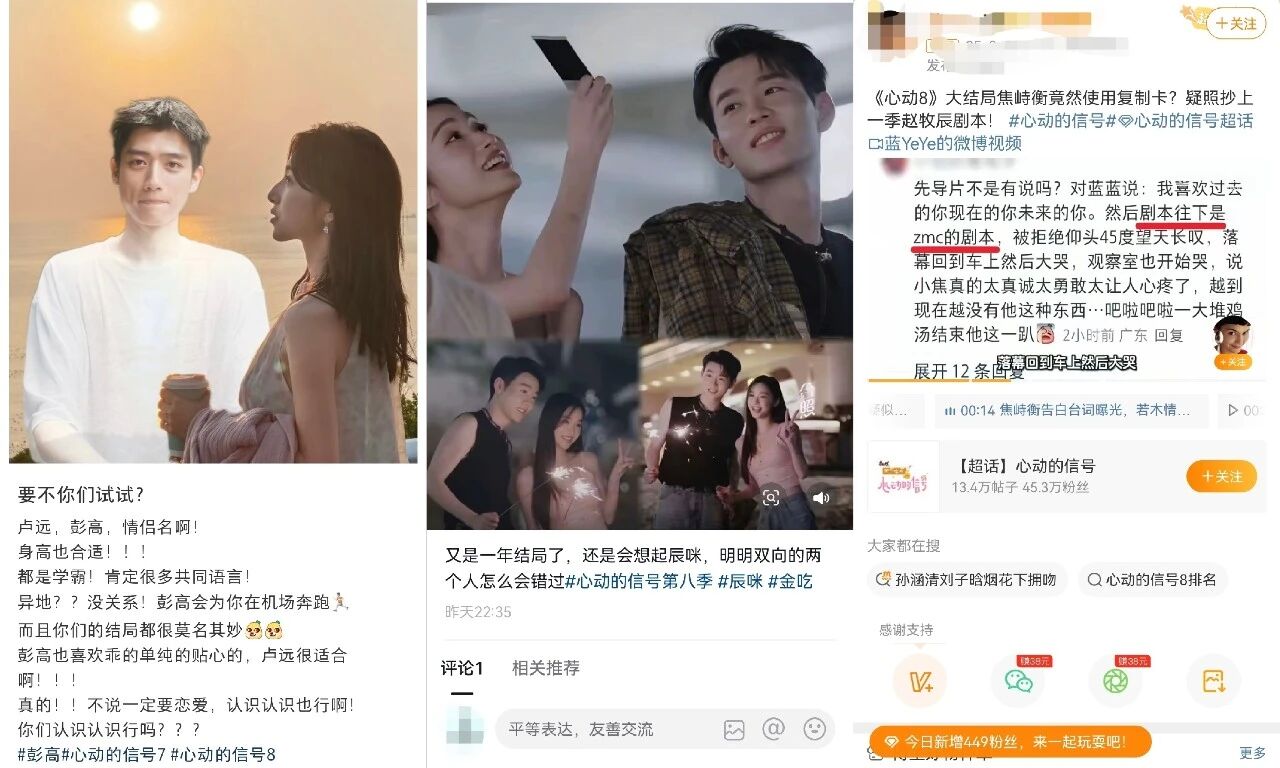 承接第七季的多个热搜引爆微博、多对CP引发全网磕糖、多位嘉宾实现数据飞升且造星成功,第八季直至结束在话题度、CP感、造星能力方面,可谓是落差明显。