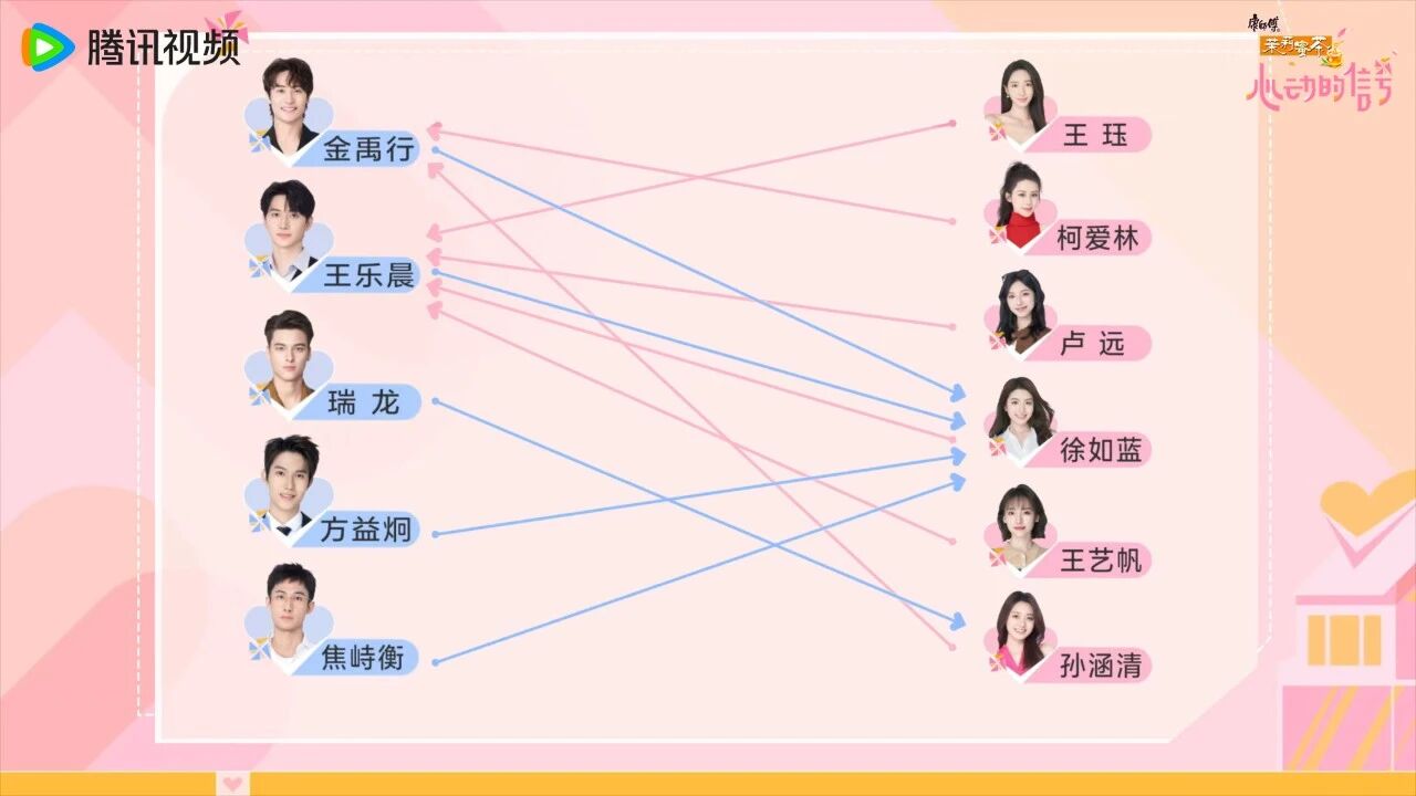 徐如蓝和王乐晨成为了勾勒第八季恋爱关系网的两位核心人物,也因此,围绕他俩或者他俩延伸开来的三角关系成了节目组最大的看点,这从首轮被公布的心动连线便能看出,四位男嘉宾选了徐如蓝,四位女嘉宾选择了王乐晨。