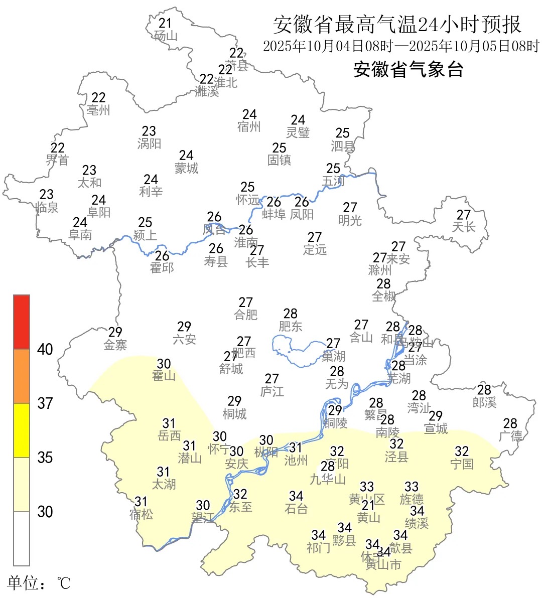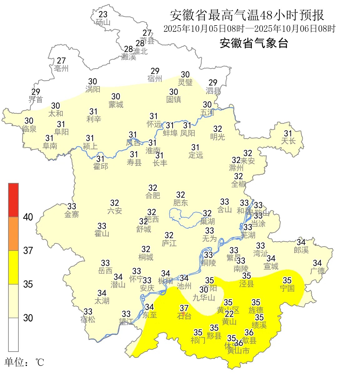 气温预报:4-9日沿淮淮北最高气温普遍30℃以下,仅5-6日淮北部分地区30~32℃;江淮之间最高气温30℃左右;沿江江南大部分地区超过30℃,其中5-8日部分地区将出现35℃以上的高温天气。10日后全省气温有所下降。
